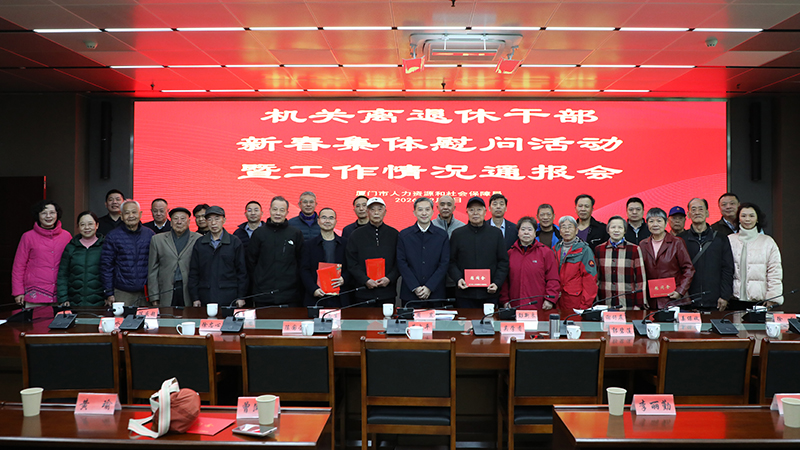 2月9日上午,厦门市人力资源和社会保障局开展机关离退休干部新春集体慰问活动暨工作情况通报会。局领导班子成员出席会议,与机关离退休干部一起共话人社事业发展,共迎新春佳节。