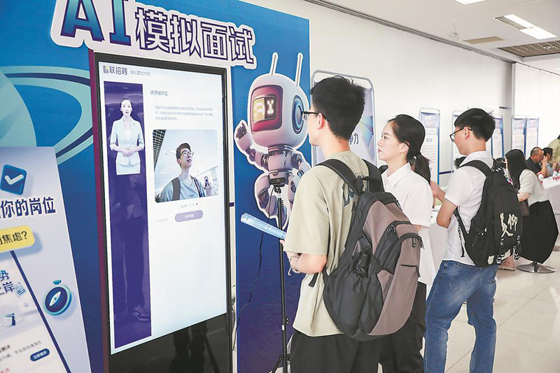 8月22日,厦门市企事业单位就业见习专场对接会举办,毕业生在AI模拟面试专区体验。