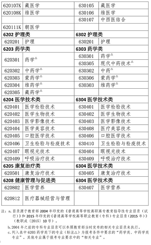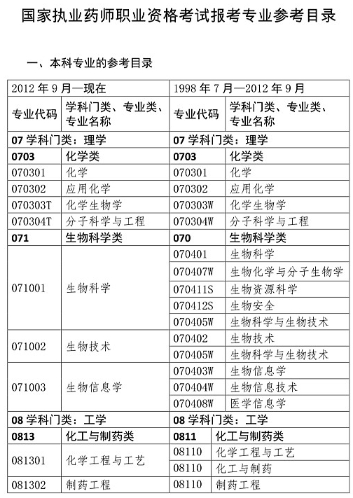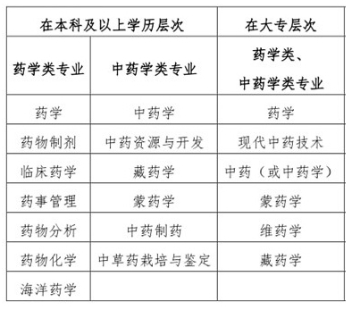 报考条件中要求的“药学类、中药学类专业”,按照国务院学位委员会、教育部印发的《学位授予和人才培养学科目录设置与管理办法》《普通高等学校高等职业教育(专科)专业设置管理办法》和《学位授予和人才培养学科目录》《普通高等学校本科专业目录(2012年)》《普通高等学校高等职业教育(专科)专业目录(2015年)》等规定,对照学科目录来界定。