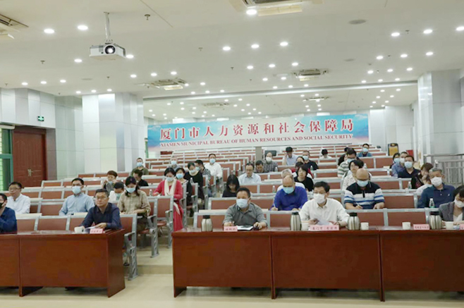 市人社局相关处室负责人及工作人员、各区人社局代表在厦门分会场参会。